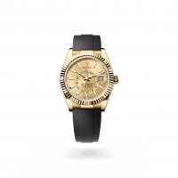 Model caseOyster, 42 mm, yellow gold Oyster architectureMonobloc middle case, screw-down case back and winding crown Diameter42 mm Material18 kt yellow gold BezelFluted, bidirectional rotatable Rolex Ring Command Winding crownScrew-down, Twinlock double waterproofness system..