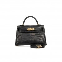 HERMES MASTER KELLY POCHETTE BLEU MYKONOS ALLIGATOR GOLD HARDWARE (22*14*7cm)